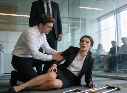 A főnök kiabálni kezdett a sérült nővel az irodában – amit egy fiatal kolléga tett, példát mutat mindenkinek