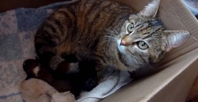 Egy kiskutyát mutatnak az anya cicának, figyeld a...