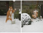7. A macska el akarta kapni a hógolyót. Majdnem sikerült.