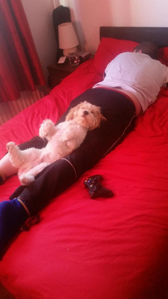 13. “Így alszanak a kutyák, ha a barátom otthon van.”