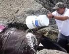 Az egyetlen dolog, amit a megmentője tehetett, hogy nedvesen tartja és megvédte a naptól egészen addig, amíg a dagály visszajön újra.