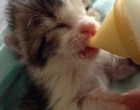 Megetették és megtörölgették őt és a kis macska máris jobban érezte magát. A kisfiú a cicát Írisnek nevezte el.
