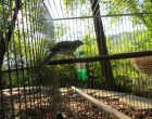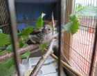 Kitették a ketrecét a szabad levegőre, hogy a madarat a nap is érje, érezze a friss szelet, az esőt de főleg azért, hogy más madarakkal is megismerkedjen.