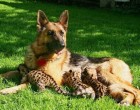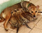 6) Az előbbi német juhászt talán mégis lekörözte ez a kutya, aki 3 tigriskölyköt táplál.