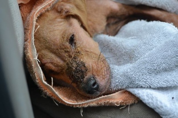 Az állatorvosok megállapították, hogy ő egy Stafford terrier és pitbull keverék és még csak négy hónapos. A kutya megdöbbentő állapota és számtalan sebesülése rettenetes történetről, fogva tartásról és a súlyos bántalmazásról árulkodott.