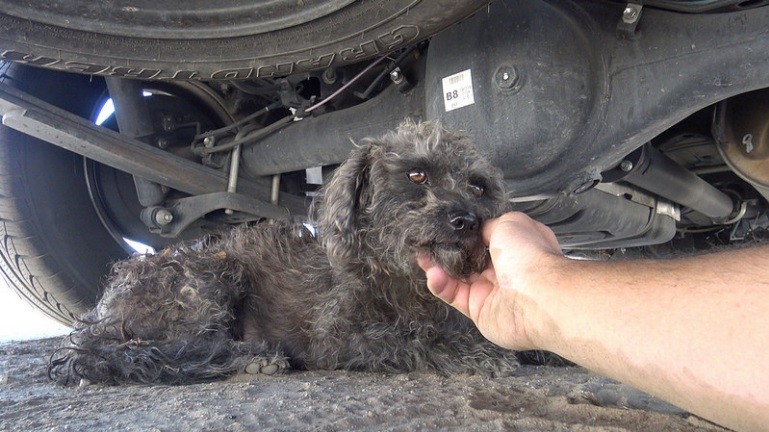 Odamentem hozzá, a kutyus éppen egy autó alatt bújkált. Letérdeltem a földre, nem volt nálam sem póráz, sem kötél. Halkan beszélni kezdtem hozzá, csak a bizalmát szerettem volna megnyertni.