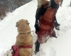 Mindegy, hogy milyen az idő, a lány gondoskodik az állatokról. Kutyája Tomi mindig vele van, télen együtt járják az utakat a mély hóban.