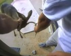 A lenti filmben láthatjuk, amikor a férfi segít az állatnak. Milyen érdekes, hogy az állat kimondottan az emberek segítségét kereste. Mintha tudta volna, hogy ők biztos a segítségére fognak sietni.
