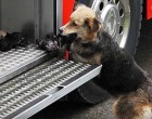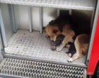 Amanda, a kutyamama tíz napos kicsinyeit mentette ki az égő házból. Úgy döntött, a tűzoltó kocsiban jó helyük lesz, ezért szépen letette oda őket.