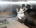 Nem tudni mióta lehetett az erdőben a pár hetes elárvult cica és a rá vigyázó szintén árva kutya amikor rájuk találtak. Az állatvédőknek sem sikerült kideríteniük, hogy hogyan kerülhettek oda és a kiscica testvérei és a cicamama sem kerültek elő.