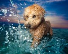Petey miközben a vízben játszik.