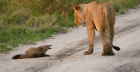 ….az nőstény oroszlán úgy döntött, megakadályozza, hogy véget vessen a kis róka életének.