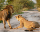 Az oroszlán egy kis sebesült rókát vett észre aki az út közepén feküdt. Szegény kis állat mozdulni sem tudott, szinte megbénult a félelemtől mikor meglátta a nagy ragadozót. A helyzet csak rosszabb lett,mikor megjelent a hím oroszlán. A kis róka elég könnyű zsákmánynak tűnt számára.
