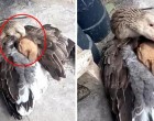 Felemelő látni a törődést a liba részéről, aki úgy viselkedett a kiskutyával, mintha a saját utóda lenne! A kutyus pedig olyan jól érezte magát megmentője szárnyai alatt, hogy rövid idő alatt el is aludt.