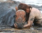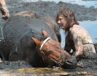 Szerencsére, egy gazda éppen akkor járt arra, és észrevette a bajban lévő lovast és lovát. Miközben a mentők úton voltak, a gazda odahajtott a traktorával, és azzal próbált Nicole és Astra kétségbeejtő helyzetén segíteni. Végül sikerült kihúznia a pórul járt lovast és a lovat.