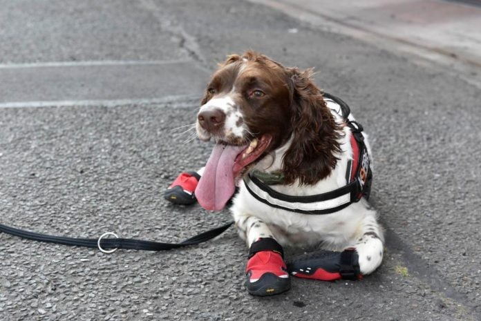 Kutyacipő védi a kutató kutyák mancsát