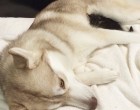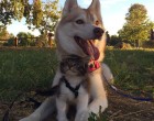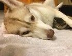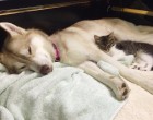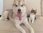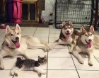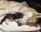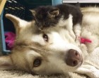 Rosie, a kiscica egészen kiskorában került a családhoz. A csöppség nagyon rossz állapotban volt, de Lilo, a szibériai husky befogadta, és saját kölykeként nevelte fel.