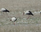 Csapatosan táplálkozó fehér gólyák Szentes határában - Fotó: Őze Péter