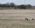 Csapatosan táplálkozó fehér gólyák Szentes határában – Fotó: Őze Péter