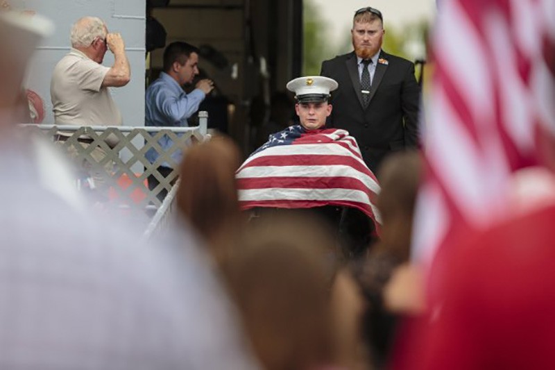 Kép: (Joel Bissell/Muskegon Chronicle via AP)A szertartáson részt vettek az amerikai tengerészgyalogság, a michigani rendőrség, a Muskegon megyei rendőrfőnöki hivatal, a városi rendőrség és tűzoltóság emberei. A GoFundMe oldalon adománygyűjtés is indult, hogy sírkövet tudjanak emelni Cenának.