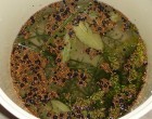 A borkénport és a Nátrium benzoátot kevés vízben feloldjuk, majd a többi vízhez adjuk, amit a vödörbe öntöttünk. Beletesszük a cukrot, a sót és a fűszereket.