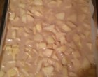 6 tojást 2 bögre cukorral, 1 vaníliás cukorral krémes állagúra keverem. 2 decis bögrét használtam. Hozzákeverek még 1 bögre étolajat, 3 bögre lisztet, 1 evőkanál fahéjat, 1 egész citromot belecsavarok, az egész citrom héját belereszelem, 1 csomag sütőporral egy kiló kockára vágott almával összekeverem. Sütőpapírral bélelek egy nagyobb méretű tepsit. Előmelegített sütőben 180 fokon 50 - 55 perc alatt készre sütöm.