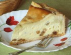 A tészta hozzávalóit egy tálba tesszük és robotgéppel összekeverjük. Amikor már megfelelő állagú, fóliába csomagoljuk és 30 percre hűtőbe tesszük. Ezután kettőbe osztjuk a tésztát és lisztezett felületen két lapot nyújtunk belőle. Kiolajozott tepsibe simítjuk az egyik lapot. Közben elkészítjük a tölteléket. A tojásokat felverjük, majd egy tálba tesszük, hozzáadjuk az alapanyagokat a mazsola kivételével és jól összekeverjük. Amikor krémes massza lesz belőle, a mazsolát is belekeverjük és eloszlatjuk a tepsiben lévő lapon. Befedjük a másik kinyújtott tésztával, majd 170 fokos sütőben 50-60 perc alatt megsütjük. Amikor kihűlt, szeletelhetjük.
