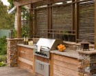 A nyári konyha kiépítéséhez felhasználhatunk természetes anyagokat is, a kő és a fa mindig tökéletes párosítás. Lehet modern, vagy rusztikus, csak az ízlésünk szabhat határokat.