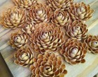 2. Csodás virágokat készíthetsz belőle, amelyek az asztal díszei lehetnek. A legkönnyebben úgy festheted le, ha egy papírra teszed, majd festék spray-el lefújod és csak ezután ragasztod össze őket.