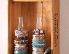 18. Saját magad barkácsolta egyszerű polc a fürdőszobába. Elég csak egy deszkára szorítóbilinccsel pár üveget felerősíteni. Csodásan egyszerű ötletet!