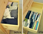 7. Ha a pólókat összehajtogatás után élére állítva teszed be a fiókba, nemcsak helyet takarítasz meg, de azonnal látni fogod, melyik, hol van.