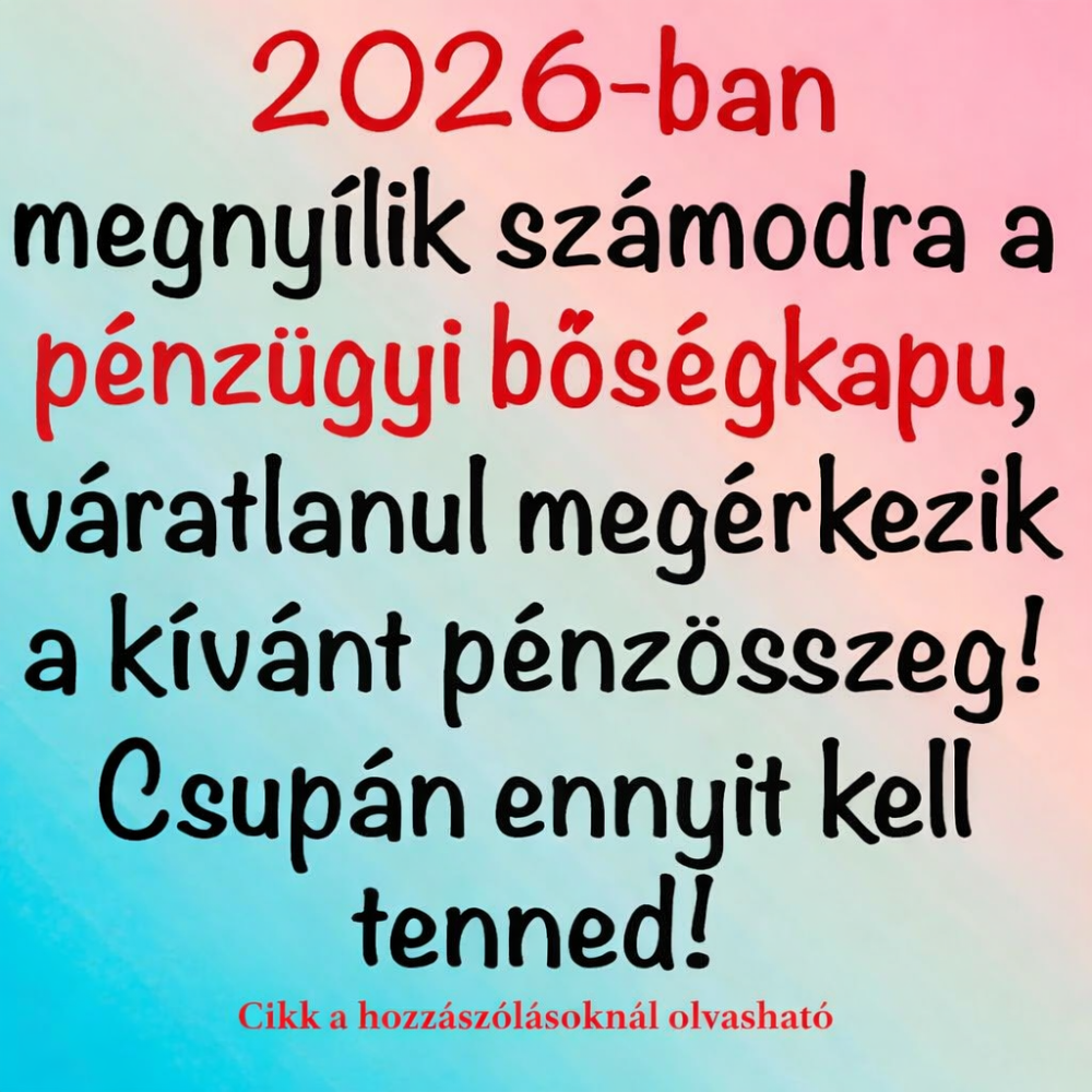 2026 már az első napokban megmutatja, hogy ez lesz az az év, amikor a pénzügyi stabilitás már nem cél, hanem természetes állapot az életedben. Valami olyan belső nyugalom árad belőled, amely mágnesként húzza be a lehetőségeket. A munkádban új irányba terel a sors, és ez a változás sokkal több pénzt hoz, mint amennyit valaha reméltél. Egy személy, akiben régóta megbíztál, most olyan tippet ad, amely anyagi fellendülést indít el. A tavasz különleges energiákat hoz: mintha végre minden passzolna, minden a helyére kerülne. Egy új projekt vagy befektetés váratlanul nagyot robban, és ezzel együtt megérkezik a kívánt pénzösszeg. A nyár elején olyan ajánlatot kapsz, amit elsőre óvatosan fogadsz, de a belső megérzésed azt súgja, hogy ez most sorsfordító lehet. A pénzügyi bőségkapu akkor nyílik meg igazán, amikor elengedsz egy régi félelmet, amely sokáig visszatartott. A környezeted is látni fogja, mennyire felszabadult és magabiztos lettél, mert a siker most végre kézzelfoghatóvá válik. A családi életben is rendeződnek a dolgok, és az anyagi biztonság megnyugvást hoz mindenkinek. Az ősz során új erőre kapsz és még bátrabban vállalsz felelősséget a döntéseidért. A pénzáramlás stabil és folyamatos lesz, mintha valami láthatatlan kéz támogatná a lépteidet. A novemberi időszak egy régi ügy lezárását hozza, amelynek eredménye jelentős anyagi többlet. Az év végén visszanézve hálával gondolsz minden apró lépésedre, mert rájössz: pont így kellett történnie. A 2026-os év egy nagy ajtót nyit meg előtted, amelyen már csak át kell sétálnod. Hét év szerencse vár, ha kedvelés és a "sok szerencsét" beírása után gördítesz lejjebb! 🍀