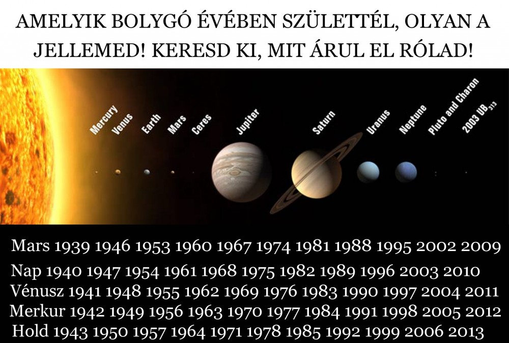 Minden év egy másik bolygó befolyása alatt áll. A bolygók mozgásának hatása a születés jegyben nagy jelentõséggel bír az ember karakterére és sorsára. A soros bolygó mindig az adott év március 21-tõl a következõ év március 20-ig fejti ki a hatását.