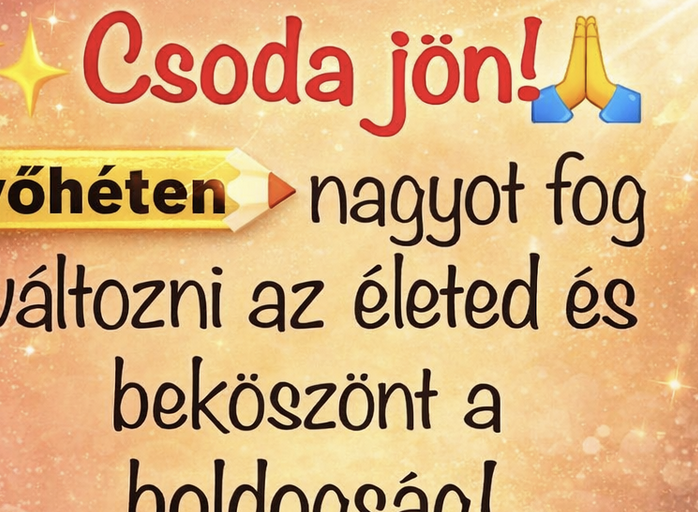 HirdetésA jövő hét új lendületet hoz az életedbe, és végre úgy érezheted, hogy nem csak sodródsz az eseményekkel, hanem te magad irányítod a folyamatokat. Munka vagy tanulás terén olyan lehetőség bukkanhat fel, amely hosszabb távon tágítja a látókörödet. A hét elején lelkesedésed ragadós lesz, másokat is motiválsz pusztán a jelenléteddel. Érzelmi téren fontos felismerés érkezik arról, mire van igazán szükséged egy kapcsolatban. Egy őszinte beszélgetés felszabadító hatású lehet. Anyagi kérdésekben most érdemes előre gondolkodni, nem csak a jelen pillanat örömeire figyelni. A hét közepén kisebb akadály lassíthat, de ez nem megállít, hanem pontosítja az irányt. Figyelj a részletekre, mert most ezek döntik el a sikert. A hét második felében belső nyugalom érkezik. Egy utazás vagy tervezett program új energiát ad. Ne ígérj többet, mint amit valóban vállalni tudsz. A szabadság iránti vágyad most nem menekülés, hanem fejlődés. A hét végén megérzed, hogy jó helyen vagy. Hét év szerencse vár, ha kedvelés és a "sok szerencsét" beírása után gördítesz lejjebb! 🍀