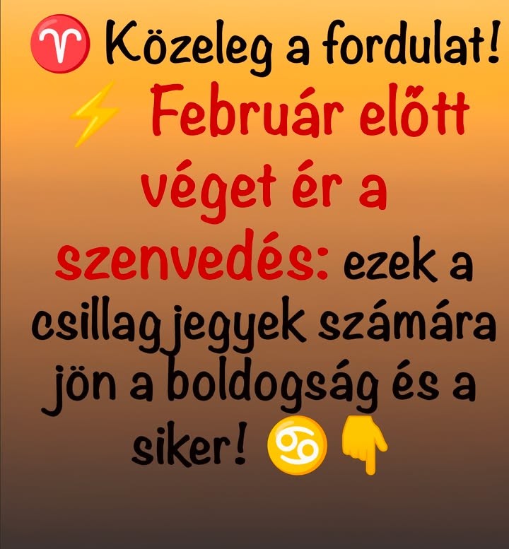 A következő napokban végre érezni fogod, ahogy valami lassan, de biztosan leoldódik rólad, mintha a hónapokon át cipelt terhek súlya hirtelen könnyebbé válna, és ahogy közeledik február, egy olyan belső tisztulási folyamat indul meg benned, amelyből új erő, új lendület és új önbizalom fakad, miközben minden apró jel arra utal majd, hogy amit eddig szenvedésnek hittél, az valójában az újjászületés előszobája volt, hiszen most végre kitisztul az ég feletted, kapcsolataid rendeződnek, a pénzügyekben váratlan fordulat érhet, és a munkádban is valami olyasmi történik, amitől megérted, miért kellett végigjárnod az elmúlt időszak nehezebb lépcsőit, miközben egy titkos vágyad lassan testet ölt, és olyan emberek közelednek feléd, akik támogatnak, felemelnek és visszaadják a benned meggyengült hitet, ráadásul a szívedben felébred egyfajta ragyogó optimizmus, amelyhez már régóta nem volt bátorságod, ám most minden apró mozzanat arra mutat, hogy január második felében végre a siker felé fordul az életed iránya, és olyan csodákat tapasztalhatsz, amelyekre titokban már nagyon régóta vársz.Hét év szerencse vár, ha kedvelés és a "sok szerencsét" beírása után gördítesz lejjebb! 🍀