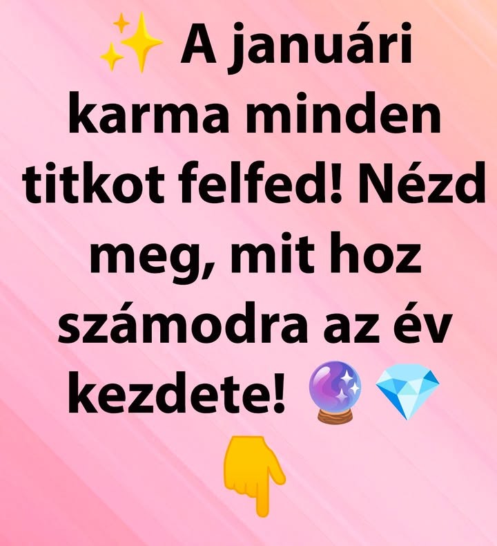 A január első napjai mintha egy különös, vibráló energiával érkeznének hozzád, amely azt súgja: változás van készülőben, méghozzá nem lassú, nem óvatos, hanem olyan felszabadító erejű átalakulás, amely végre széttöri azokat a láthatatlan kereteket, amelyekben az elmúlt időszakban mozogtál, és te érzed ezt, még ha nem is látod még a formáját.A hónap közepe felé a karma különös üzeneteket küld: találkozások, ismétlődő szimbólumok, visszatérő gondolatok vagy olyan helyzetek formájában, amelyek mintha tesztelnék, hogy mennyire vagy hajlandó valóban önmagad lenni, felvállalni a saját igazságod és elszakadni mindattól, ami már nem rezonál veled, és ha hagyod, január áthangol, megtisztít és visszavezet önmagad tiszta verziójához.A hónap utolsó napjaiban pedig egy sorsszerű változás érkezik, amely nemcsak átrajzolja a jövődet, hanem visszaad egy olyan belső szabadságot, amely nélkül már régóta nem érezted teljesnek magad, és ez a felszabadulás olyan energiákat mozdít meg benned, amelyek új célok, új kapcsolatok, új lehetőségek felé vezetnek, és mire a hónap végére érsz, rádöbbensz, hogy a karma valójában nem elvenni akart, hanem visszaadni valamit, ami túl régóta hiányzott belőled.Hét év szerencse vár, ha kedvelés és a "sok szerencsét" beírása után gördítesz lejjebb! 🍀