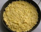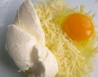 Reszeljük le a sajtot és a fokhagymát. A lereszelt sajt felét keverjük össze 1 tojással és a szárított kaporral, tegyük félre. A megmaradt sajtot keverjük össze egy tojással, a fokhagymával és a tejföllel.