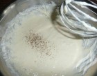 A tojásokat verjük fel és keverjünk hozzá 3 – 4 evőkanál lisztet, 3 gerezd zúzott fokhagymát és fűszerezzük.