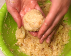 Vizes kézzel formáljunk belőle golyókat és bő forró olajban süssük ki.