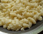 És még egy tipp azért, hogy ne tapadjon össze a nokedli: miután a nokedlit összekevertük, sós, forrásban lévő vízben kifőzzük, és ha feljön a felszínre, egy szűrőlapáttal kivesszük, majd leszűrjük. És itt jön a lényeg: olajos sós vízben átöblítjük, majd ismét leszűrjük. Így nem fog összetapadni!