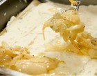 Teszünk rá egy réteg lasagne tésztát, burgonyát, majd hagymát.