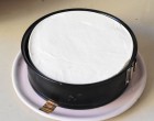 A babapiskóta darabokat törjük el kettőbe, mártsuk bele tejbe és rakjuk le a tortaforma aljára. Ha szükséges vághatunk kisebb darab piskótákat is, hogy egyenletes legyen a torta alja.