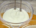 A tojásfehérjéből verjünk kemény habot. A habtejszínt is verjük fel.