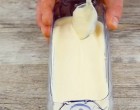 Tegyük rá a másik két fél palackot, vagy fedjük be fóliával és tegyük hűtőbe 3 órára. Majd vegyük le a palackot a tetejéről, tegyünk alá egy tálcát és fordítsuk rá az édességet.