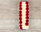 A tetejére kenjük rá a megmaradt krémet, oldalra pedig tegyünk még gyümölcsöket. A közepébe tegyük a megmaradt piskótákat.