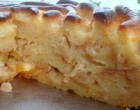 Az almát tisztítsuk meg és szeleteljük fel, locsoljuk meg a citromlével. Verjük fel a tojásfehérjét kemény habbá egy fél bögre cukorral, majd kavarjuk ki a tojások sárgáját a megmaradt cukorral. Keverjük a felvert habhoz a tojássárgáját és szitáljuk hozzá a lisztet. Öntsük a massza felét az olajjal kikent sütőformába, tegyük rá az almát, majd öntsük rá a massza másik felét. 180 fokos sütőben, süssük 40 percig.