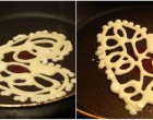 - A forró serpenyőbe a toldat segítségével (vagy a kupak megfelelő meglazításával) csepegtessük a palacsintatésztát. Vékony rétegben „rajzoljuk” a mintákat.