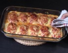 Öntsük rá a megmaradt besamelmártást, kanalazzuk rá a sűrített paradicsomot és szórjuk rá a reszelt sajtot. Süssük a tojásokat 180 fokos sütőben nagyjából 10 percig.