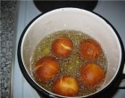 Bő forró olajban süssük ki a golyókat, fakanál segítségével forgassuk, hogy egyenletesen piruljon és lassú tűzön süssük, hogy a belseje is átsüljön.