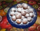 A megsült golyókat rakjuk papírtörlőre, hogy felszívja a fölösleges olajat, majd tegyük át egy tálcára, hagyjuk kihűlni és szórjuk meg porcukorral.